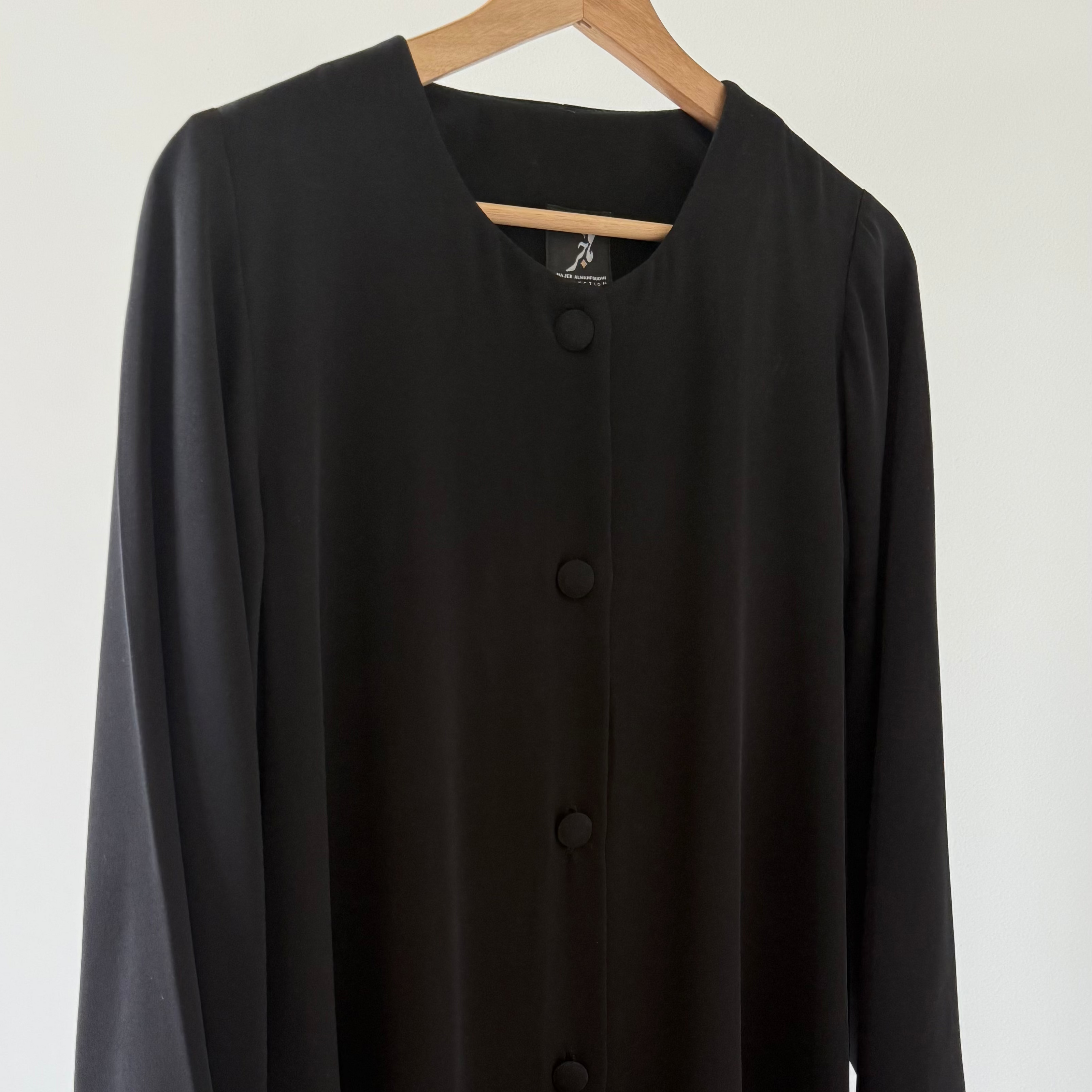 عباية يومية بنمط مورق ، لون أسود بقصة البشت ، Daily black leaves pattern bisht style cut abaya.