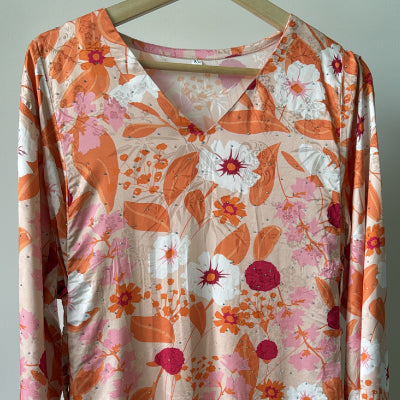 جلابية حرير برتقالي بفصوص بربطات جانبية